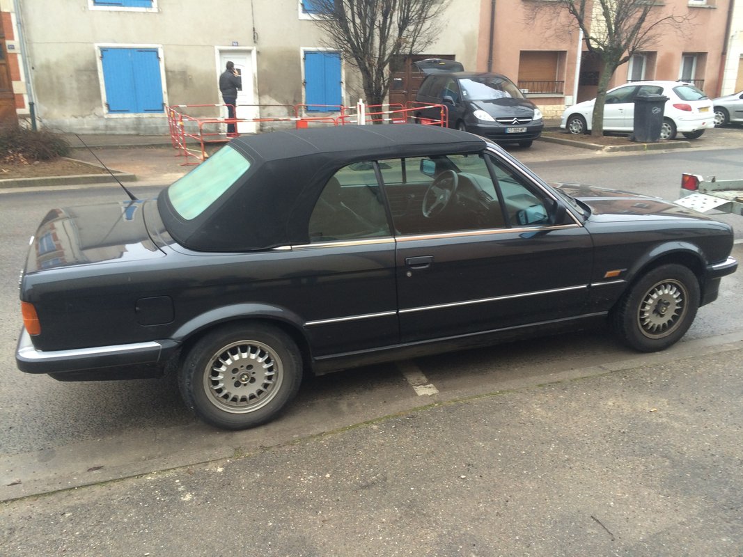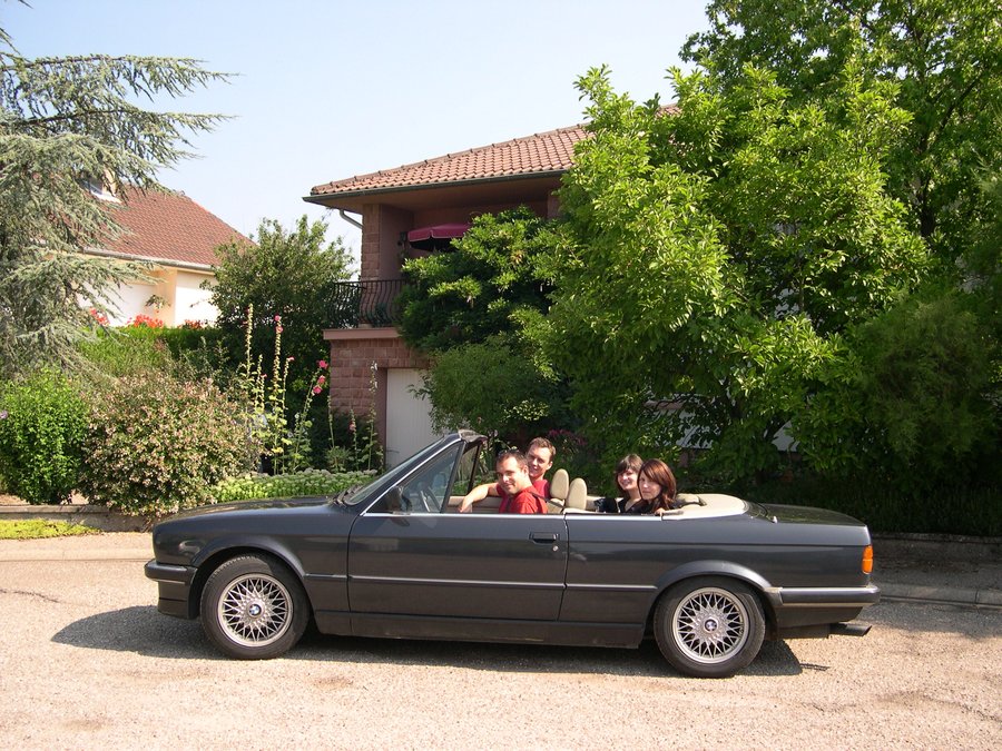 Après quelques années d'économies et plusieurs mois de recherches, nous découvrons en vitrine d'une concession BMW de Lorraine implantée à 2 kms de la maison familiale des mes grands parents, une jolie 325i phase 1 cabriolet en dépot vente. Après quelques semaines de négociations et vu les travaux (minueurs : pneus, échappement...) à prévoir, nous tombons d'accord sur le prix et j'entre enfin dans la grande famille des BMistes.