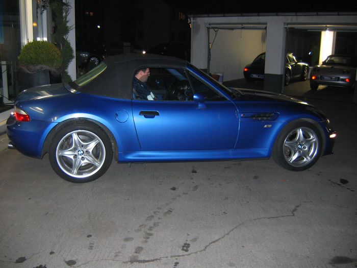 Avant de valider l'achat, je me fais accompagner par Patrick, propriétaire depuis quelques années d'un autre Roadster M bleu estoril. Oeil et oreille attentive, il ne note aucun obstacle à la concrétisation du rêve.